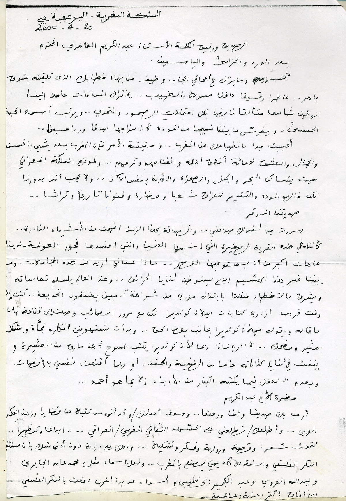 رسالة الأديب المغربي نقوس المهدي عام 2000